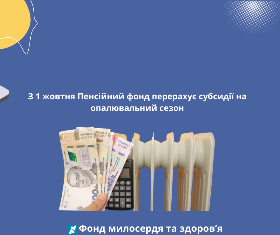З 1 жовтня Пенсійний фонд перерахує субсидії на опалювальний сезон